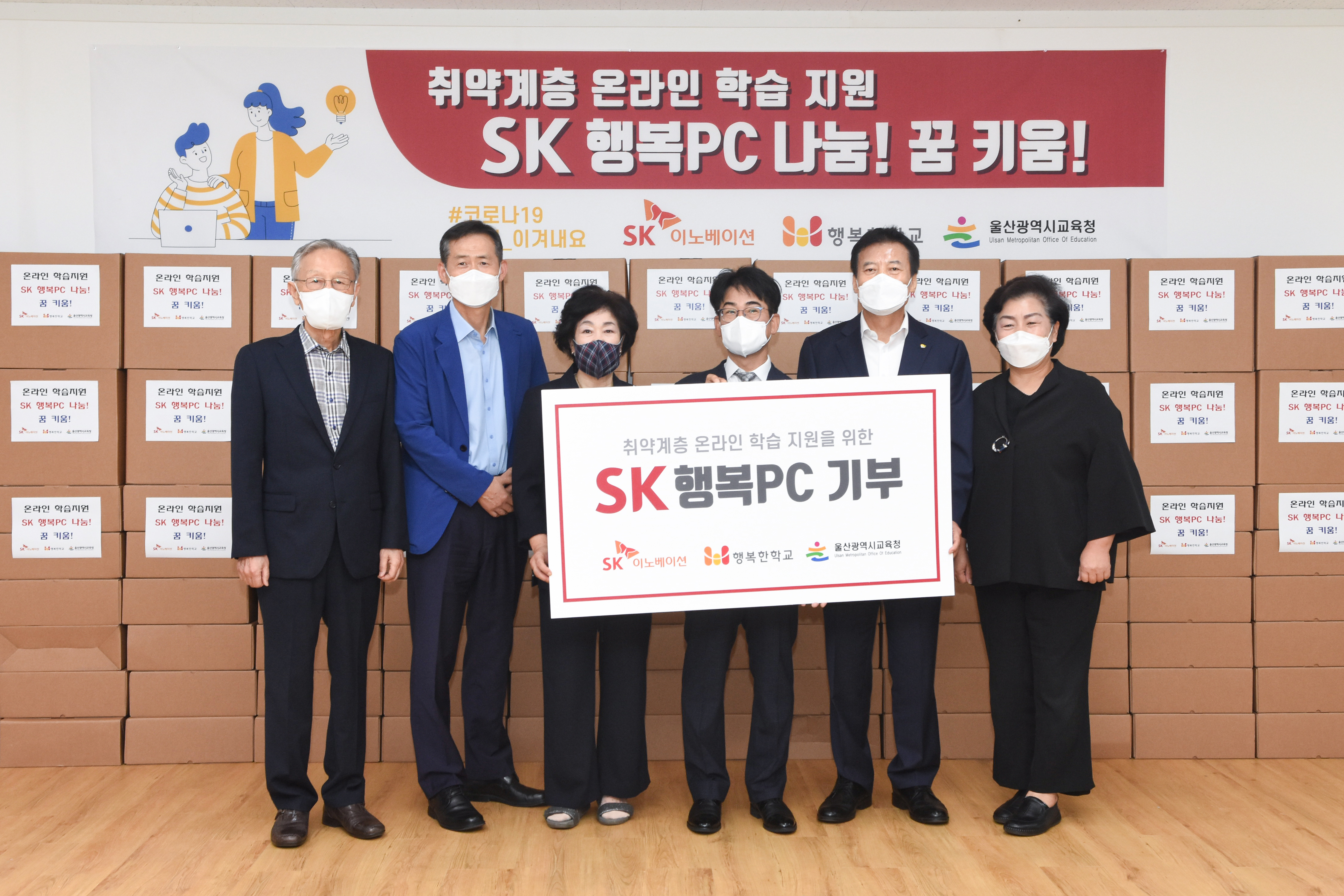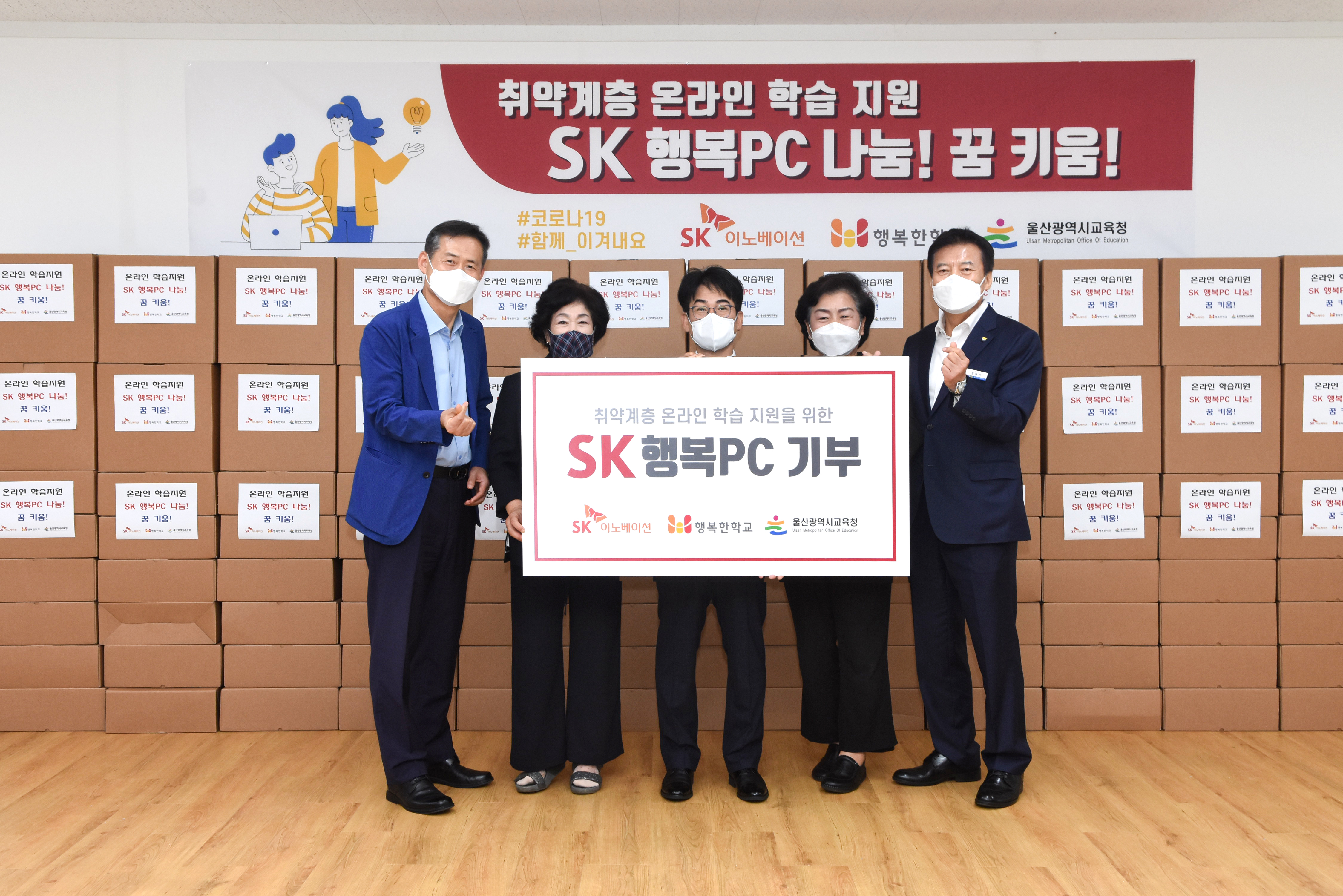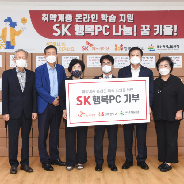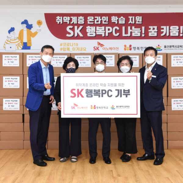 SK이노베이션 울산Complex는 9일 오전, 울산광역시 북구에 소재한 울산행복한학교 강의실에서 ‘SK 행복PC’ 전달식을 개최했다. 이날 전달식에는 SK이노베이션 울산Complex 백부기 대외협력실장, 울산행복한학교 한숙자 이사장과 울산광역시 강남교육지원청 정재균 교육장, 울산광역시 강북교육지원청 장원기 교육장, 울산시의회 교육위원회 소속 천기옥 시의원 등 관계자들이 참석했다.