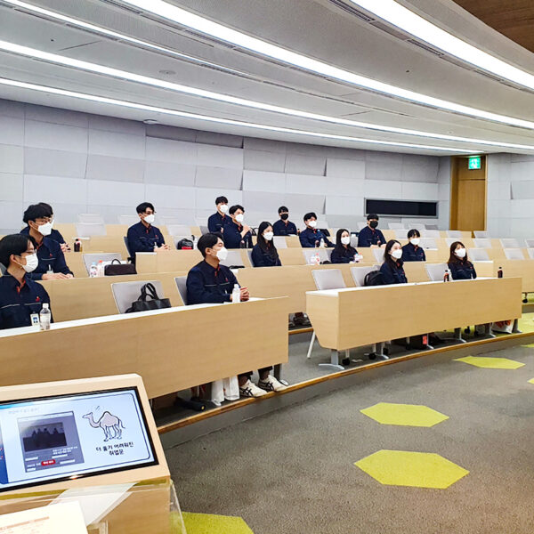 ▲ 울산CLX 2021년 하반기 신입사원들이 울산CLX 투어를 하며 회사에 대해 알아가고 있다. – 위 교육은 코로나19 방역수칙을 철저하게 준수하며 진행됨