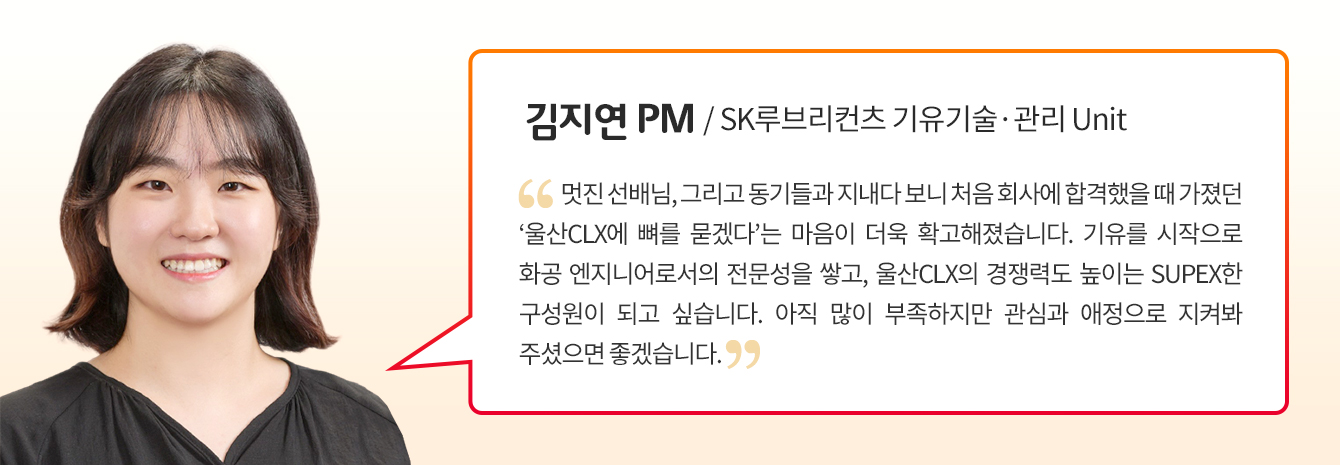 울산CLX의 미래를 책임질 패기 넘치는 신입사원들! 열정 가득한 이들이 진정한 SK이노베이션人의 행보를 이어나가길 응원한다.