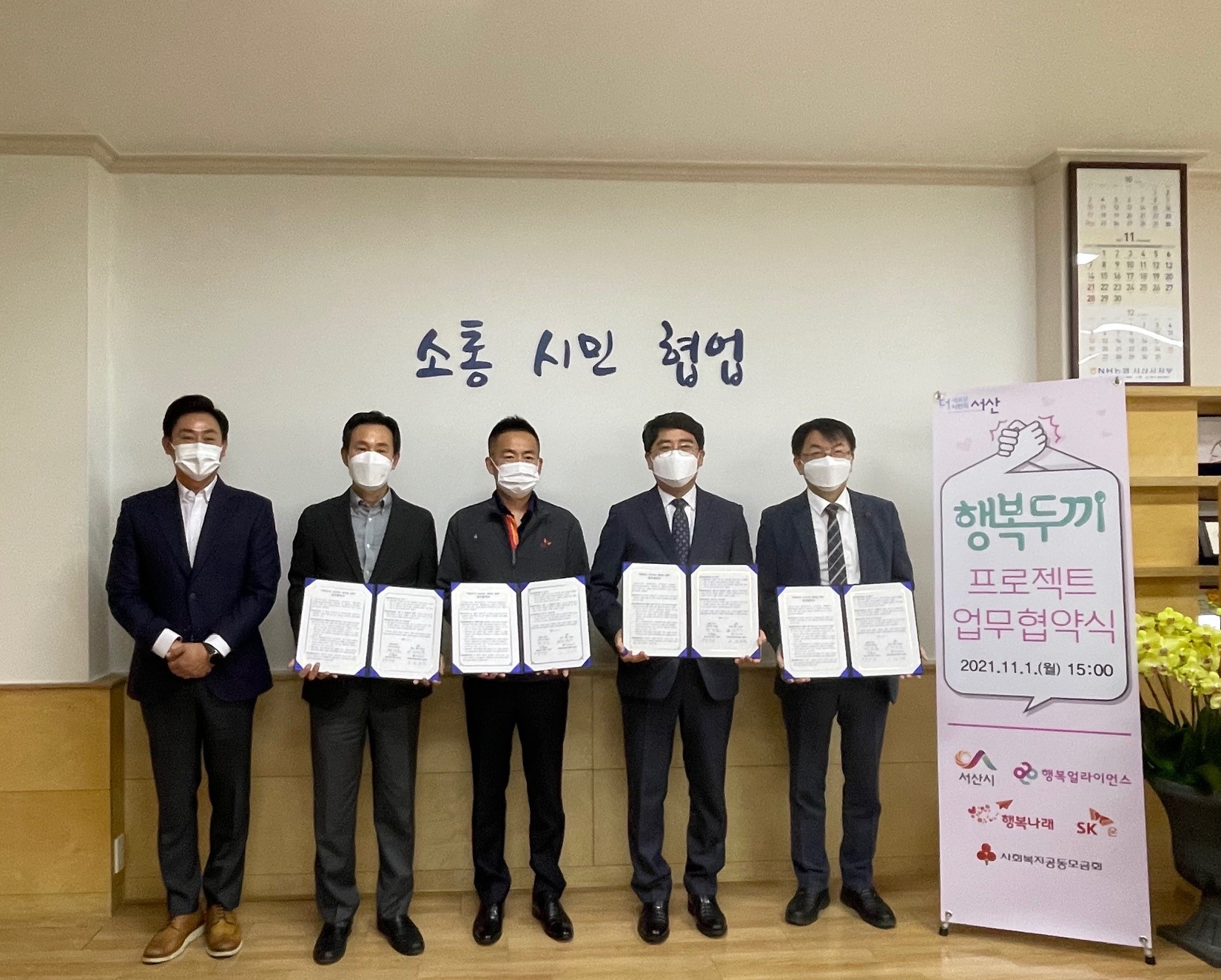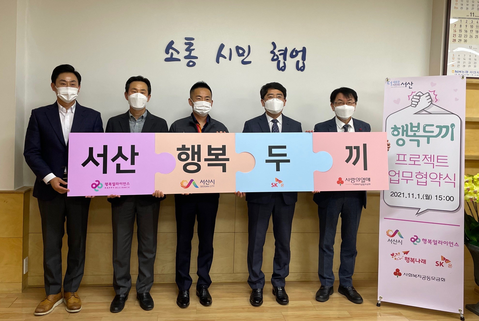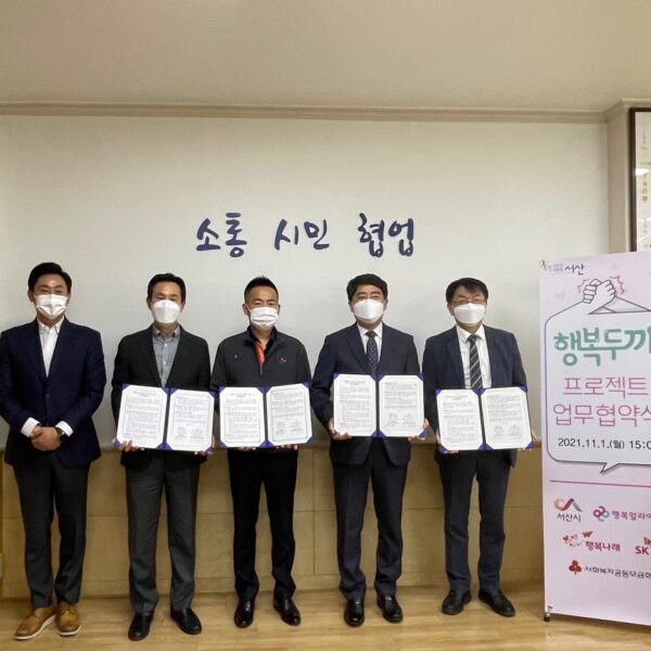 서산시, 사회복지공동모금회, 행복얼라이언스(*), SK온은 서산시청에서 ‘행복두끼 프로젝트’ 업무협약을 체결한다고 1일 밝혔다.