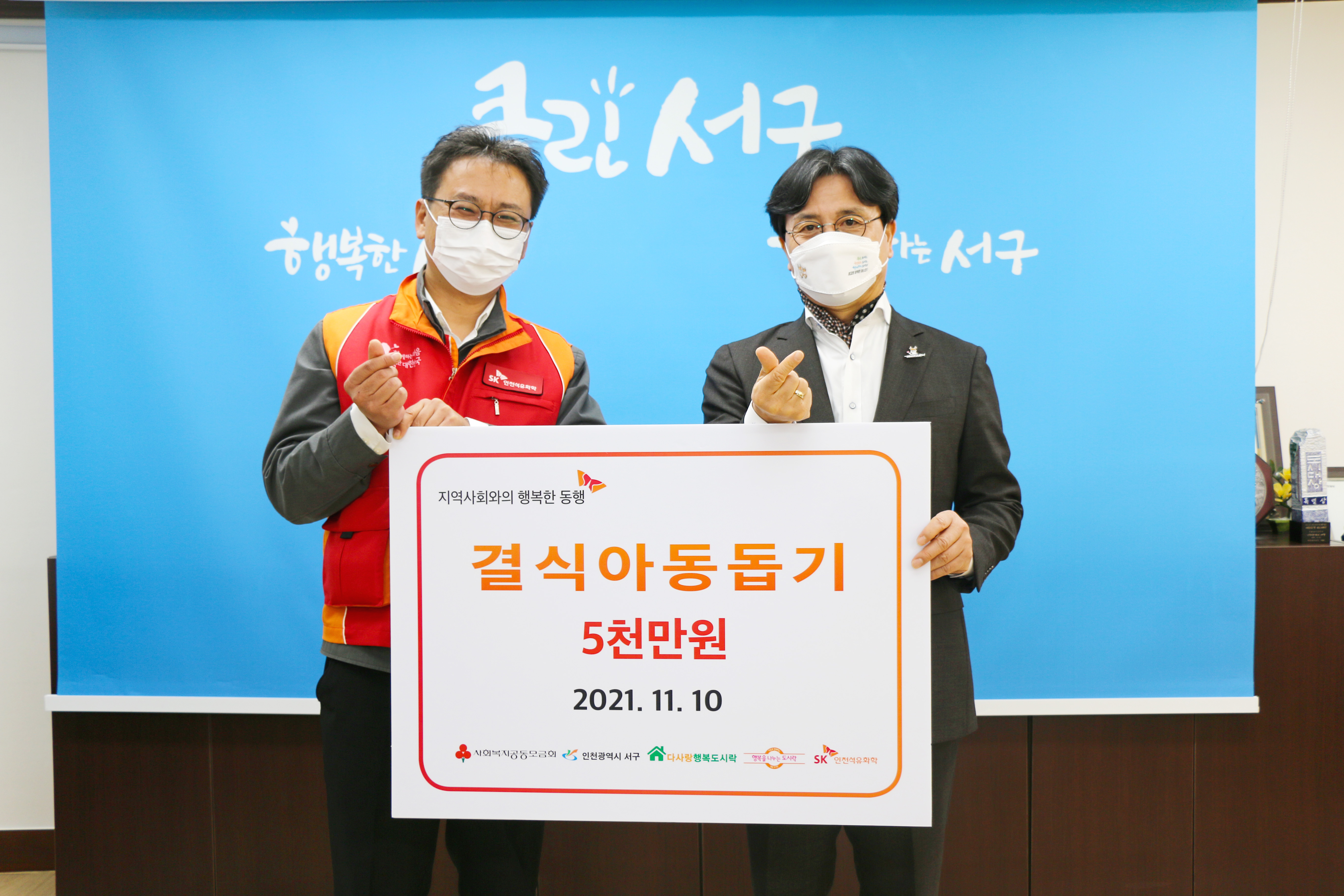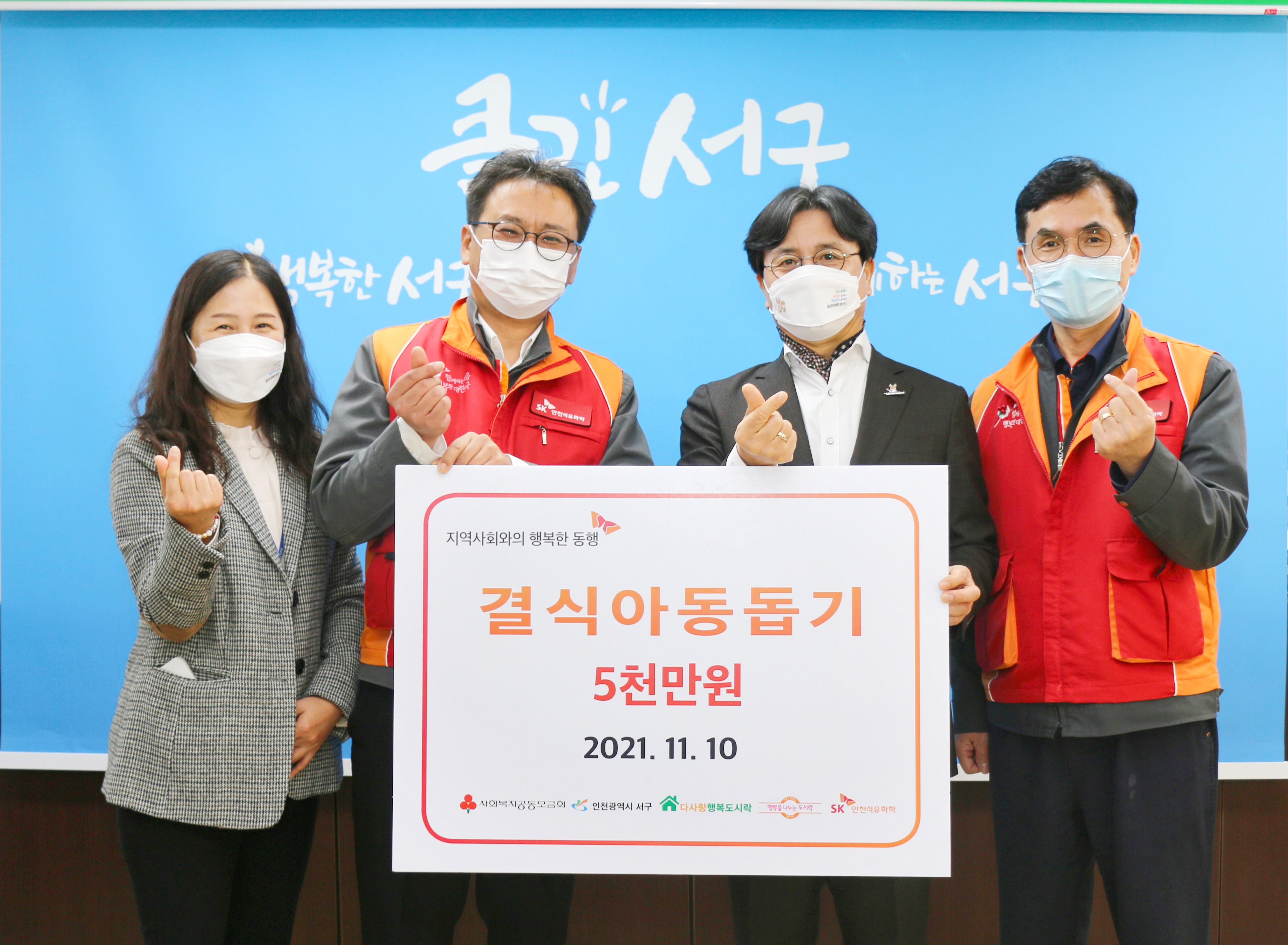 SK인천석유화학은 10일 인천광역시 서구청에서 ‘행복 얼라이언스 결식 아동 행복도시락 나눔’ 기부금 전달식을 개최했다. 이날 행사에는 이재현 서구청장과 SK인천석유화학 홍욱표 경영혁신실장 등이 참석했다.