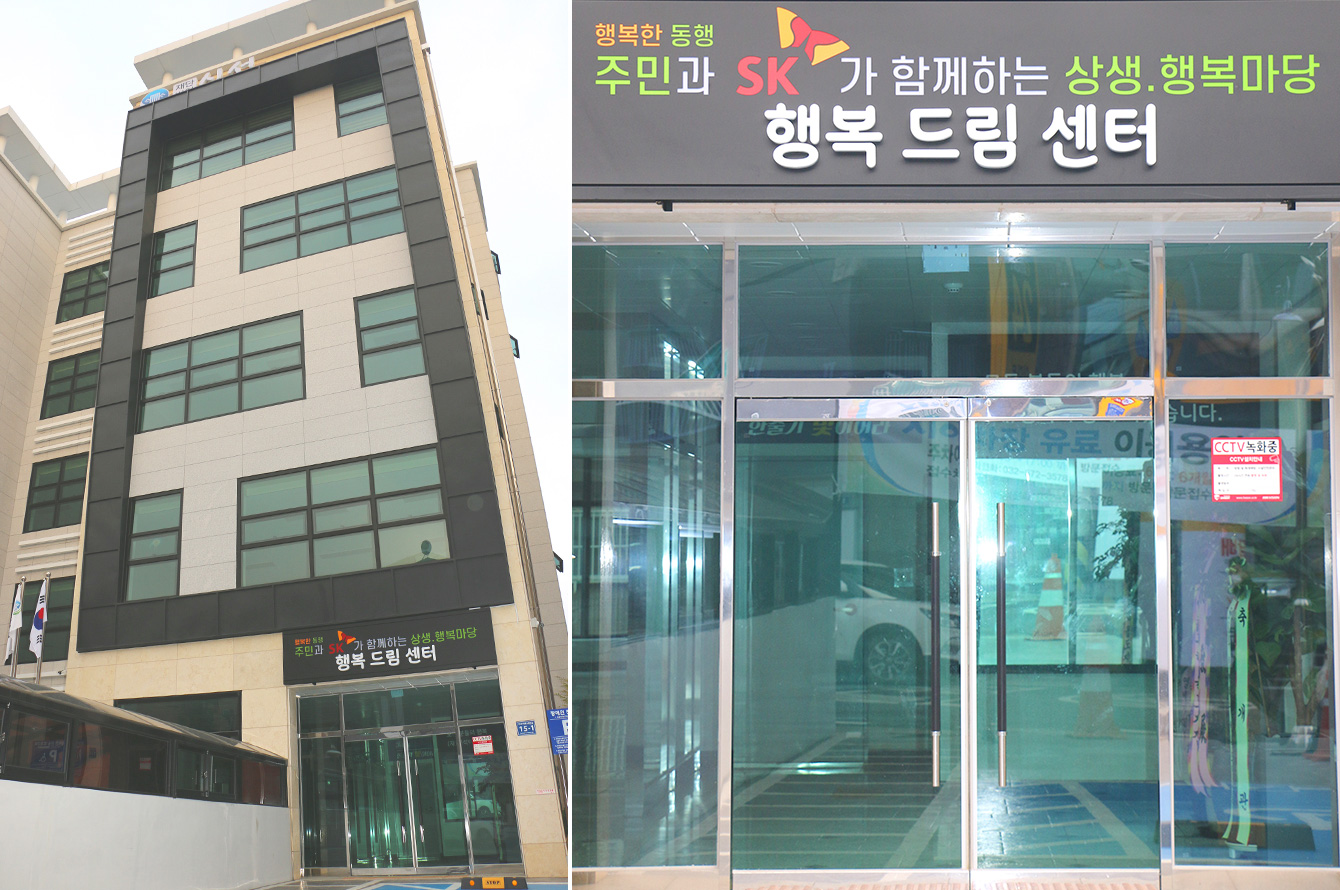 (사진2) 행복드림 커뮤니티센터 전경(좌)과 센터 입구(우)