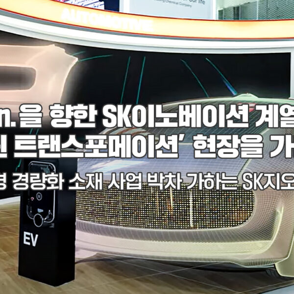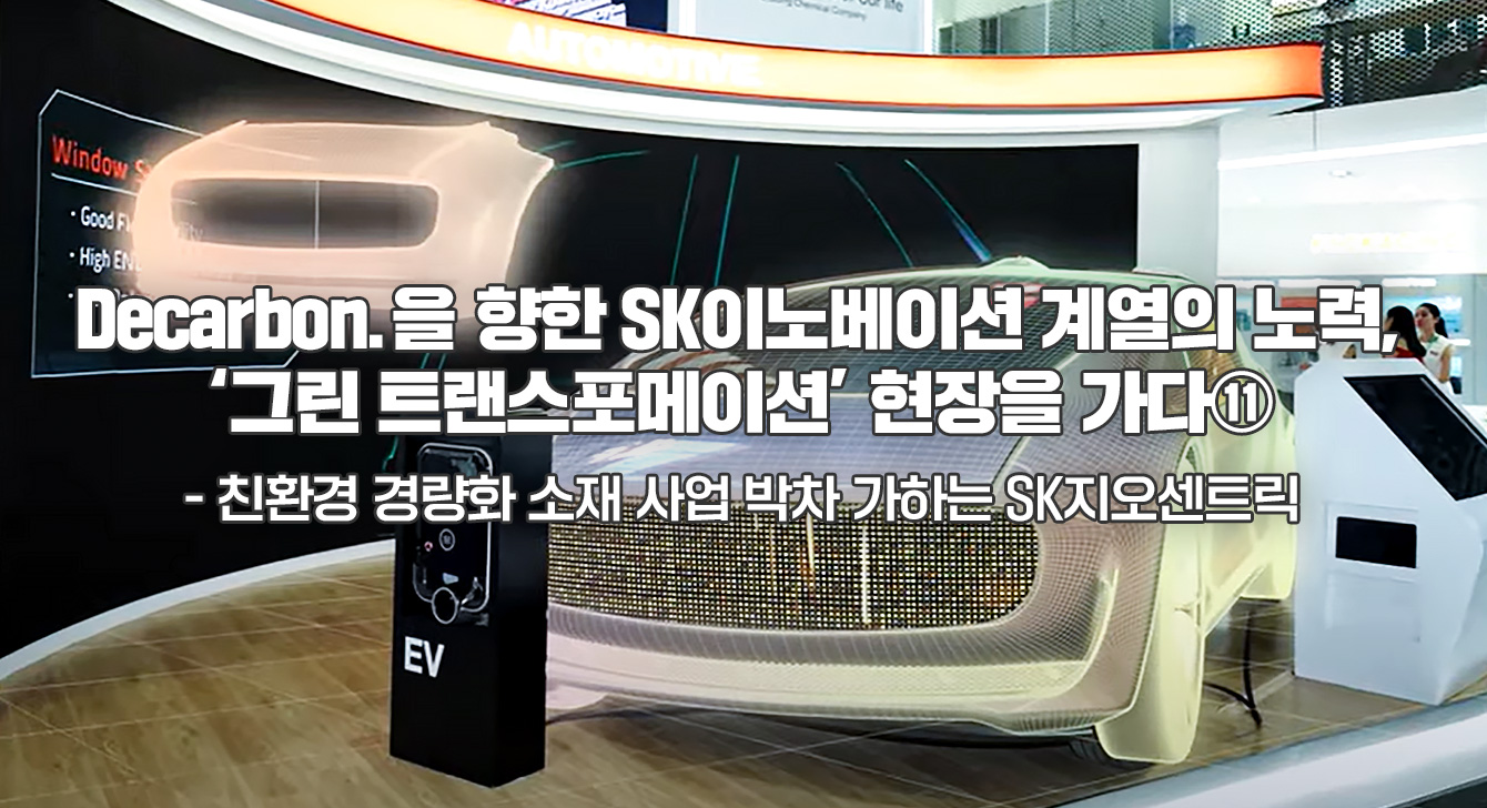 디카본(Decarbon.)을 향한 SK이노베이션 계열의 노력을 직접 확인할 수 있는 그린 트랜스포메이션 현장! 열한 번째로 전기차 산업 친환경 생태계 발전에 기여하기 위해 친환경 경량화 소재 개발에 박차를 가하고 있는 SK지오센트릭을 소개한다.