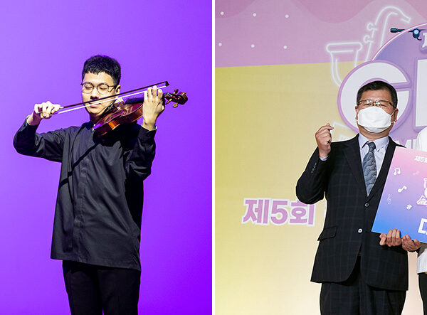 ▲ (좌) 제5회 GMF 무대에 오른 ‘비바체 앙상블’이 ‘Passacaglia(헨델 주제)’를 연주하고 있다. / (우) 제5회 GMF에서 대상을 수상한 ‘비바체 앙상블’