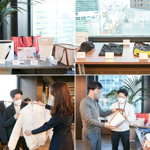 이 외에도 사회적기업 ‘몽세누’, ‘라잇루트’, ‘우시산’은 사일리지 업사이클링 제품을 비롯해 생활 잡화, 의류 등 올해 다양한 연구와 노력을 통해 제작된 플라스틱 업사이클링 신제품 20여 종을 선보였다. 이날 사회적기업들은 특히 SK지오센트릭이 논밭에 버려지는 폐사일리지를 재가공한 재생 플라스틱(PCR Resin)**과 신재(Virgin plastic)***를 혼합한 업사이클링 원단을 활용해 제작한 가방을 전시했다.