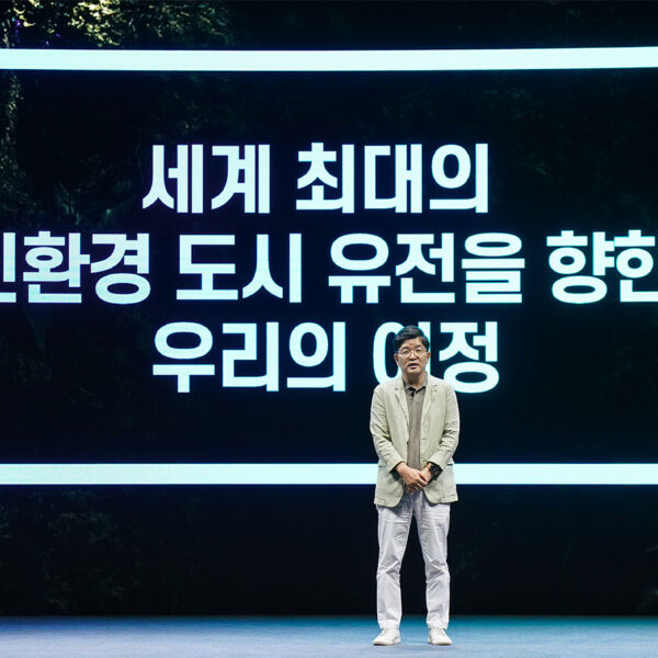 ▲ SK지오센트릭 나경수 사장이 지난 8월 열린 SK지오센트릭의 ‘브랜드 뉴 데이(Brand New Day)’에서 회사의 파이낸셜 스토리(Financial Story)’의 구체적인 실행 방안을 발표하고 있다.