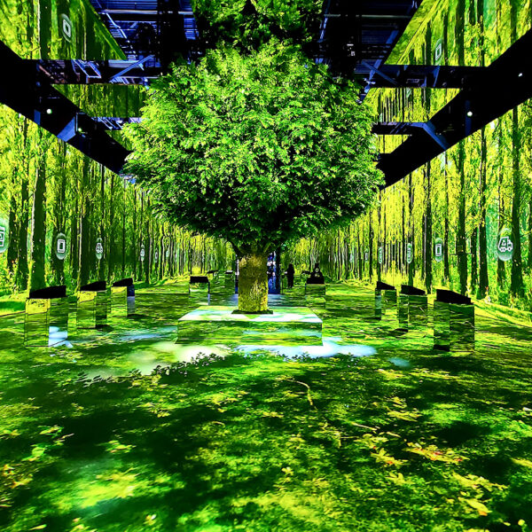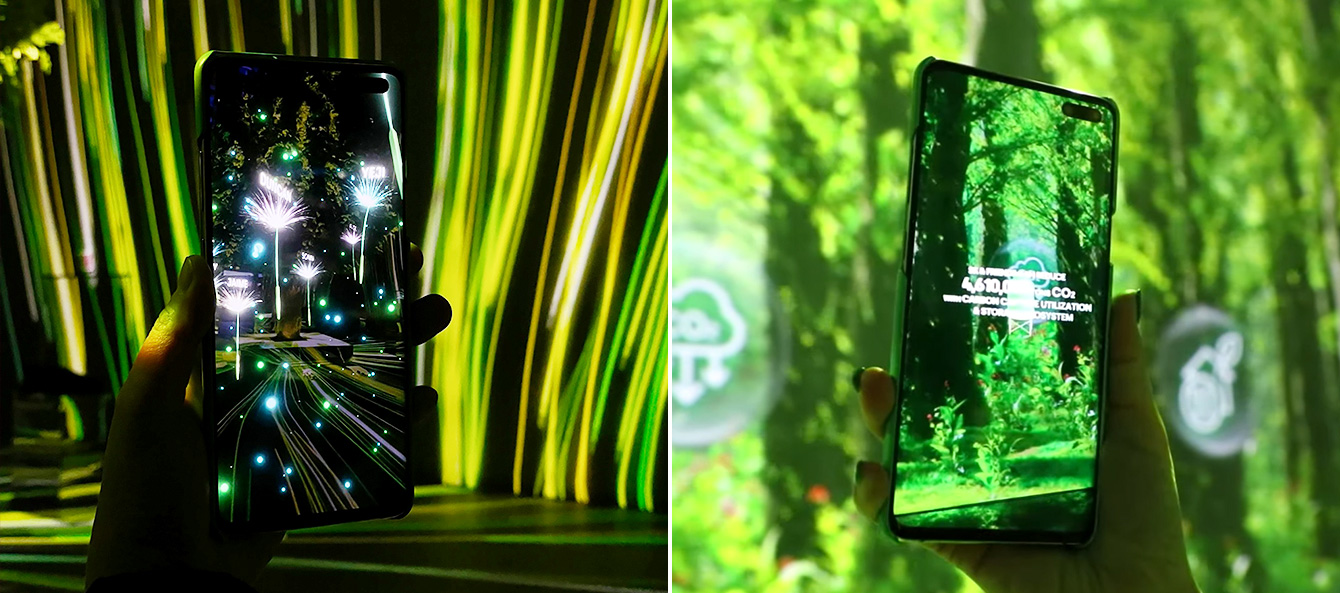 두 번째 ‘생명의 나무(Tree of Life)’ 구역은 생명의 나무와 초대형 4면 영상을 통해 지구 환경의 중요성을 생각해 보는 공간으로 꾸며졌다. 벽면 영상에 SK의 탄소 감축 활동을 상징하는 아이콘이 나타나면, 관람객들이 동행 앱으로 이를 스캔해 SK의 탄소 감축 메시지를 AR로 체험할 수 있게 했다.
