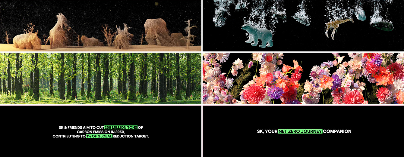 더불어 환경에 대한 고민을 담은 약 4분가량의 매니페스토 영상((Manifesto Film)을 선보여 기후 위기의 심각성을 경고하고, 넷제로 동참을 격려하는 메시지를 전했다. 탄소중립 미래를 위한 관람객의 ‘동의’는 더 깨끗한 미래를 위한 씨앗이 되어 관람객의 닉네임과 함께 벽을 타고 흐르게 된다. 이렇듯 감각적으로 표현된 SK의 ‘넷제로를 향한 여정’에 관람객들은 호기심과 흥미를 보이며 호평했다.