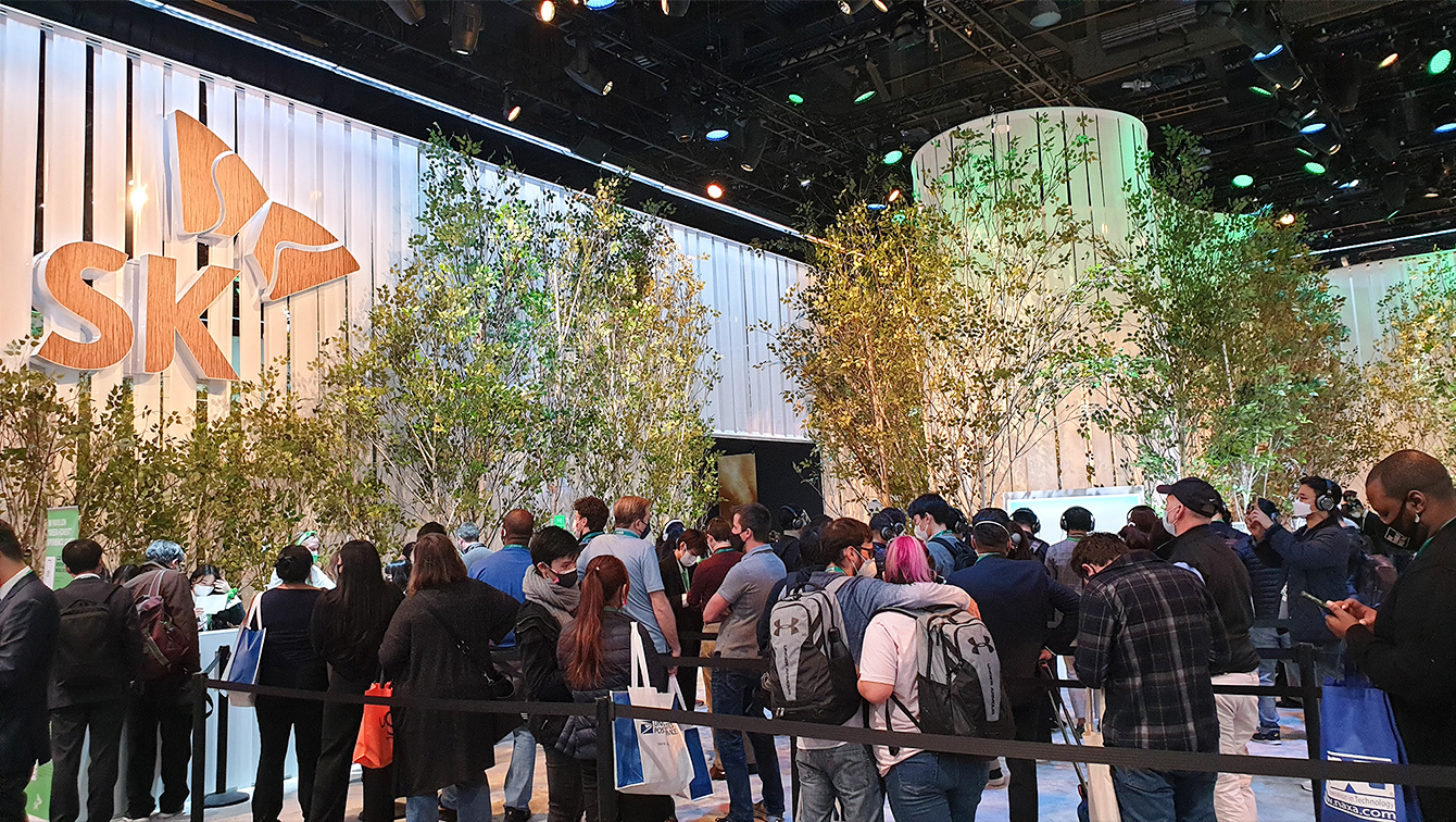 ▲ ‘CES 2022’ SK 전시관 ‘그린 포레스트 파빌리온’(Green Forest Pavilion)’을 방문하기 위해 줄지어 대기 중인 관람객들