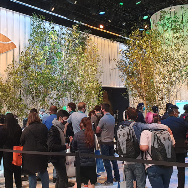▲ ‘CES 2022’에 참가한 SK 전시관 ‘그린 포레스트 파빌리온(Green Forest Pavilion)’의 1구역 그린 애비뉴(Green Avenue)를 보기 위해 대기중인 관람객들