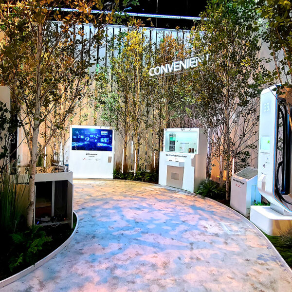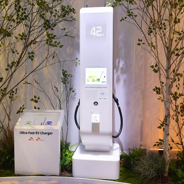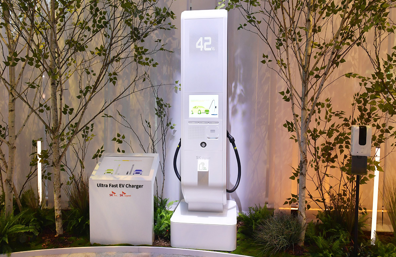 ▲ SK 전시관 ‘그린 포레스트 파빌리온’의 1구역 그린 애비뉴 – 편의 섹션을 통해 소개된 소개된 SK시그넷의 전기차 급속 충전기