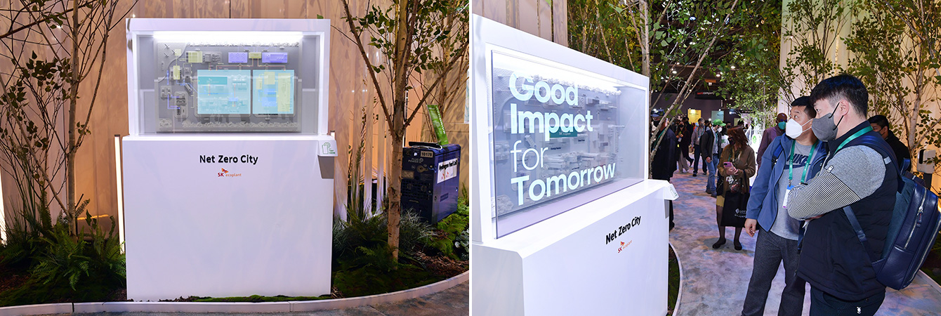 ▲ ‘CES 2022’에 참가한 SK 전시관 ‘그린 포레스트 파빌리온’의 1구역 그린 애비뉴(Green Avenue) – 청정(Clean) 섹션 전경