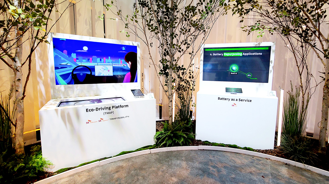 관람객들은 안전 섹션에 마련된 태블릿PC와 모니터 화면 등을 통해 앞으로 다가올 친환경 모빌리티 시대를 안전하게 만들어줄 SK의 기술력을 직접 경험했다.