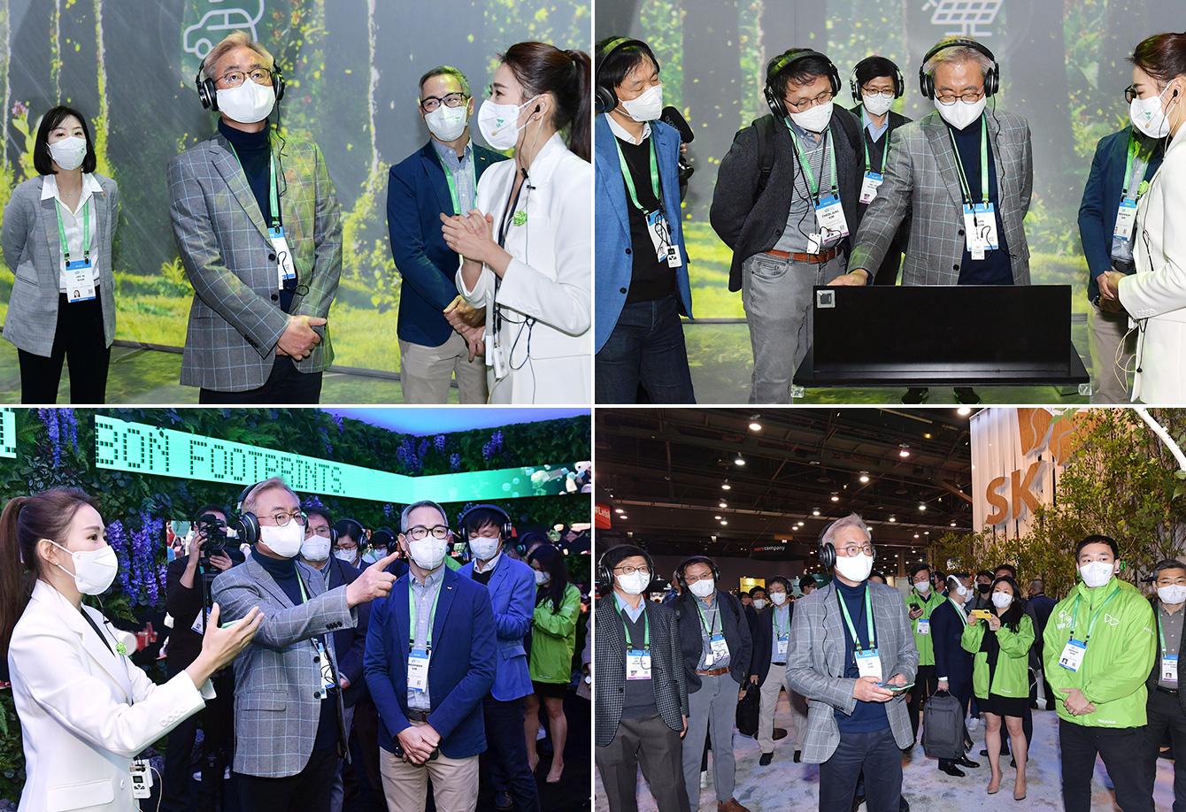 CES 2022 개막일인 1월 5일(미국 현지 시간)에는 SK이노베이션 김준 부회장 및 경영진이 SK 전시관을 찾아 탄소 감축을 위한 여정에 동행하기도 했다.