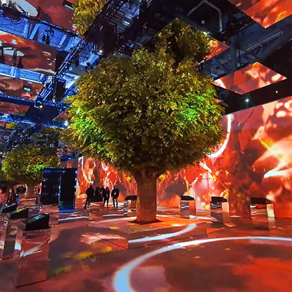 ▲ ‘CES 2022’의 SK 전시관 ‘그린 포레스트 파빌리온(Green Forest Pavilion)’의 2구역 ‘생명의 나무(Tree of Life)’를 둘러보고 있는 관람객들