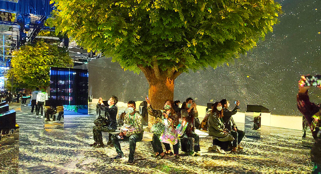 ▲ ‘CES 2022’의 SK 전시관 ‘그린 포레스트 파빌리온(Green Forest Pavilion)’의 2구역 생명의 나무(Tree of Life) 전경