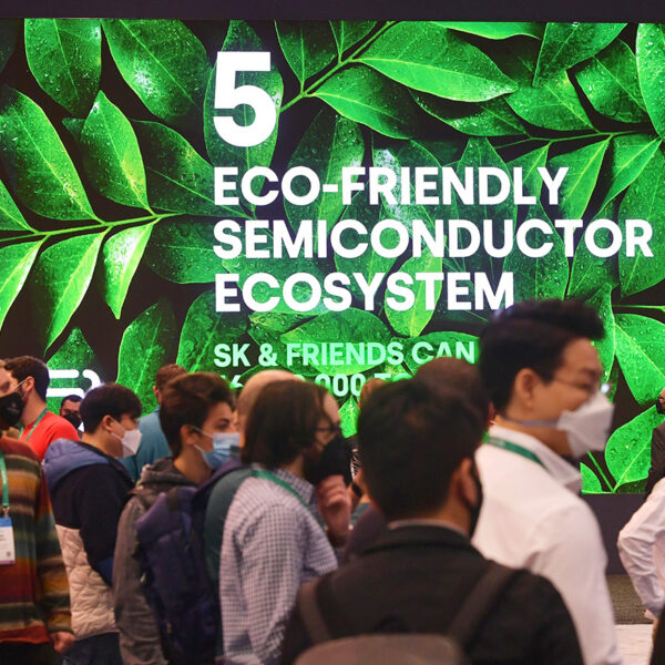 촘촘히 박힌 삼나무 모형이 장식된 오솔길이 인상적이다. 길을 돌아 들어가면 SK의 넷제로 달성을 위한 핵심 기술들이 소개됐다. CES 혁신상을 2개나 받은 SK온의 고성능 배터리 ‘NCM9’를 비롯해 데이터를 저전력, 고효율로 처리하는 SK텔레콤의 반도체 ‘사피온’이 기억에 남는다. 최근 떠오르는 신기술을 친환경 키워드로 엮으려는 노력도 엿보였다. SK텔레콤의 메타버스(가상현실) 플랫폼 ‘이프랜드’를 소개하면서 SK 전시관 관계자는 “필연적으로 탄소를 발생시키는 이동·출장을 대체할 수 있는 기술”이라고 설명했다.