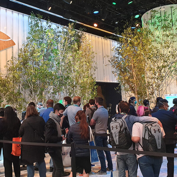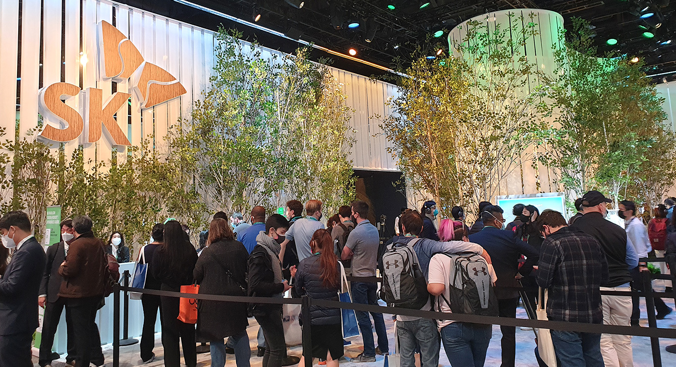 ▲ ‘CES 2022’ SK 전시관 ‘그린 포레스트 파빌리온(Green Forest Pavilion)’에 입장하기 위해 대기 중인 관람객들