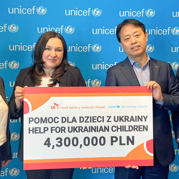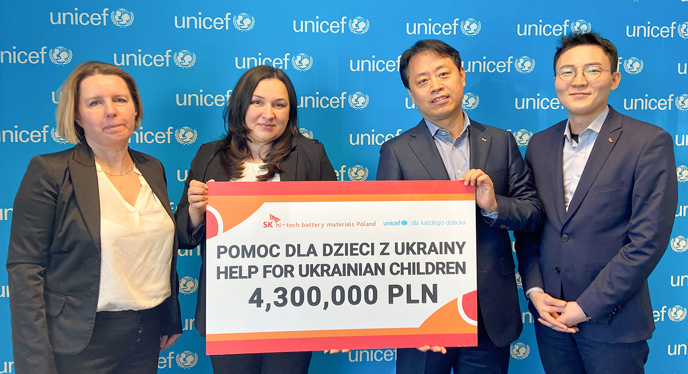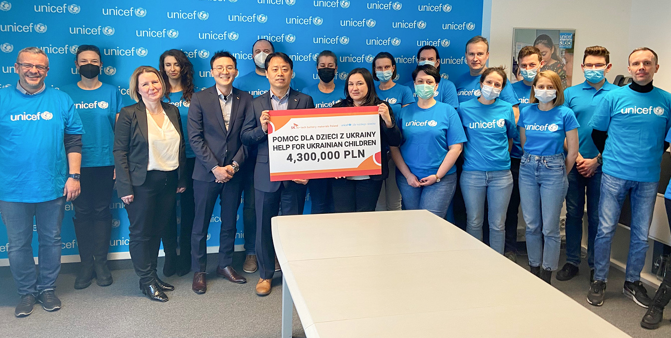 이에 따라 SK그룹은 3월 11일(현지 시간), SK이노베이션의 정보전자소재 사업 자회사인 SK아이이테크놀로지 폴란드 법인을 통해 현지 국제구호단체인 ‘유니세프폴란드’에 우크라이나 난민 어린이 긴급 구호 성금 100만 달러를 전달했다.