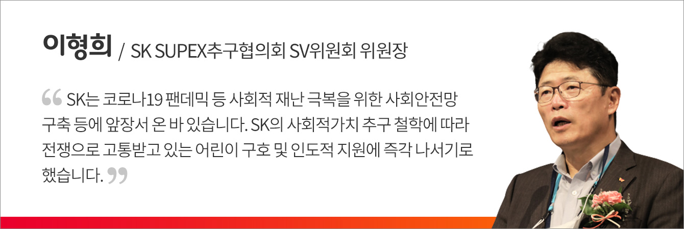 한편 SK그룹은 ESG* 경영을 적극 추진하며, 결식아동 지원을 위한 행복얼라이언스** 등 ‘사회안전망(Safety Net)’ 차원에서 어린이의 삶의 질 향상을 위한 사회적가치(Social Value, SV) 추구 활동을 지속해 오기도 했다.