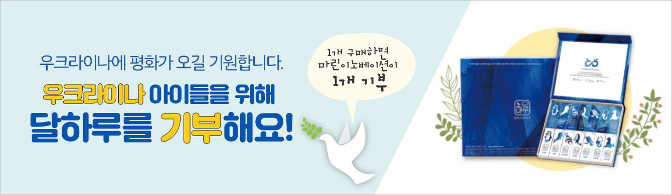 더불어 마린이노베이션은 온라인 공식 쇼핑몰 마린샵(https://www.marine-shop.co.kr/)을 통해 달하루 양갱 구매 시, 그 수만큼 전쟁으로 고통받는 우크라이나 어린이들과 난민에게 달하루 양갱을 전달하는 ‘1+1 특별 기부행사’도 진행 중이다.