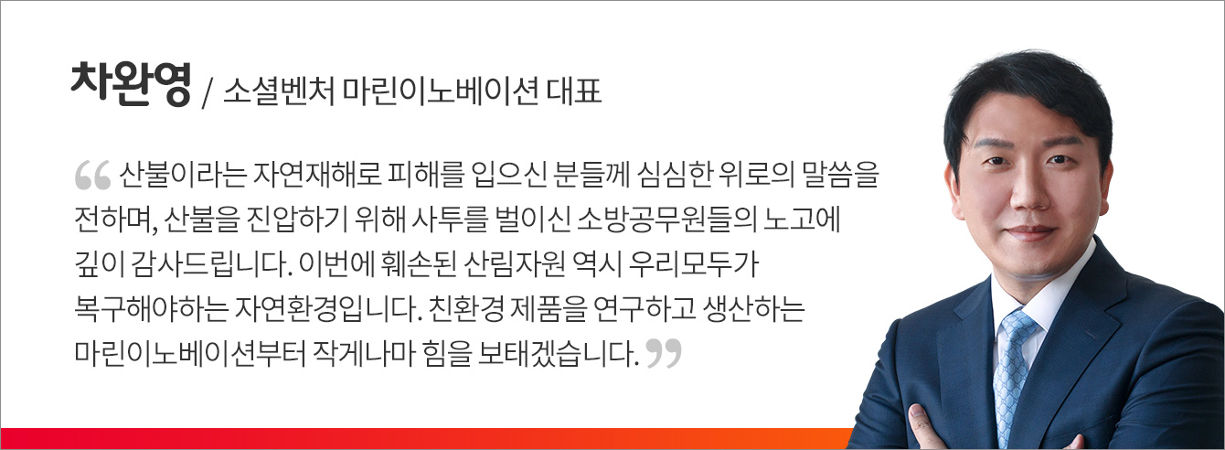 “노고에 진심으로 감사드립니다” – 친환경 소셜벤처 마린이노베이션, 울진·삼척 산불 진압한 소방공무원에 간식 기부