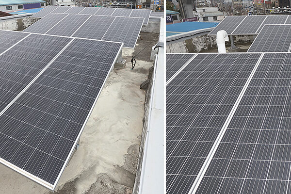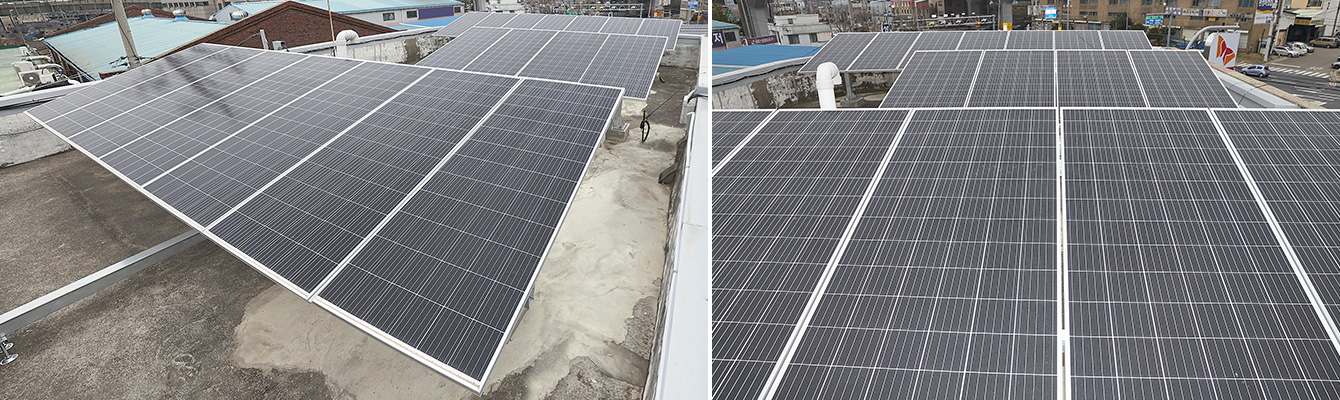 SK에너지는 친환경 전기 생산을 위해 SK박미주유소 건물 지붕에 태양광 패널을 설치했다. 기존에 운영하던 주유소의 부지와 구조를 고려해 태양광발전 설비를 설치했기 때문에 공간 효율성도 높다. SK박미주유소에 설치된 에너지 슈퍼스테이션 1호는 유동 인구가 많은 서울의 집약적인 공간에서도 2500MWh에 달하는 전력을 안정적으로 생산하고 있다. 이는 전기차가 약 4만 3,000회 충전할 수 있는 규모다.