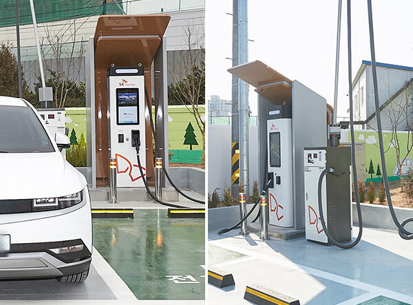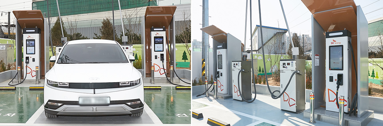 ▲ SK 박미주유소에 개소한 1호 ‘에너지 슈퍼스테이션’의 전기차 충전시설