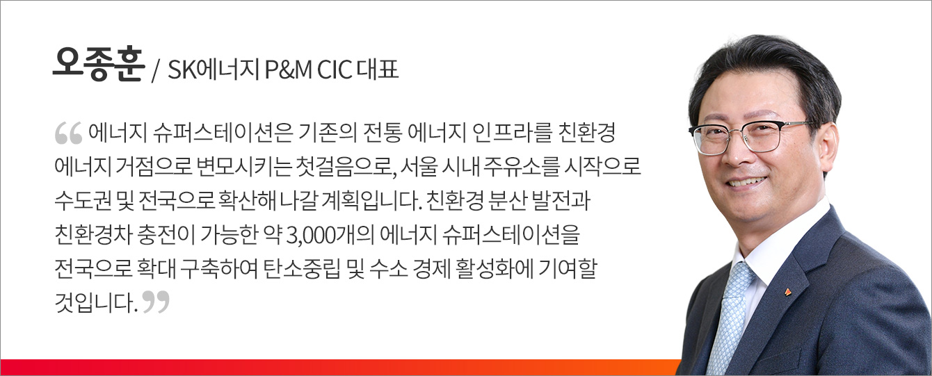 주유소는 에너지 수요가 집중되는 도심에 위치해 있어, 미래 전기차·수소차 충전 인프라 설치에 가장 적합한 장소다. 또한 차량 충전과 신재생 에너지 발전까지 가능한 복합 스테이션으로 진화한 ‘에너지 슈퍼스테이션’은 탄소중립 실현을 가장 빠르게 이끌 수 있는 에너지 전환 모델이 될 것이다.
