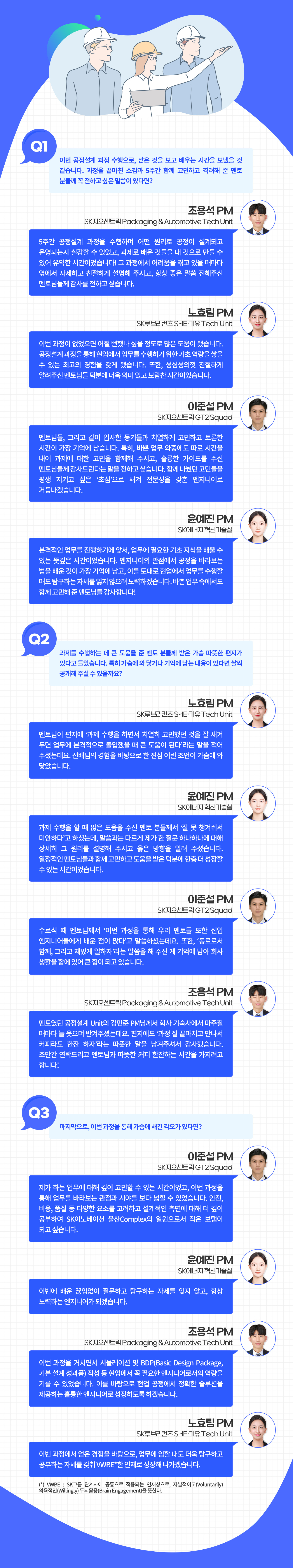 특히, SK에너지 박창길 Engineering본부장은 신입 엔지니어들에게 “프로세스 엔지니어는 공정에서 일어나는 모든 일을 책임져야 하는 ‘공정의 주인’”이라면서 “엔지니어로서 일에 대한 보람과 자부심을 잃지 않길 바란다”는 격려의 말을 전했다.