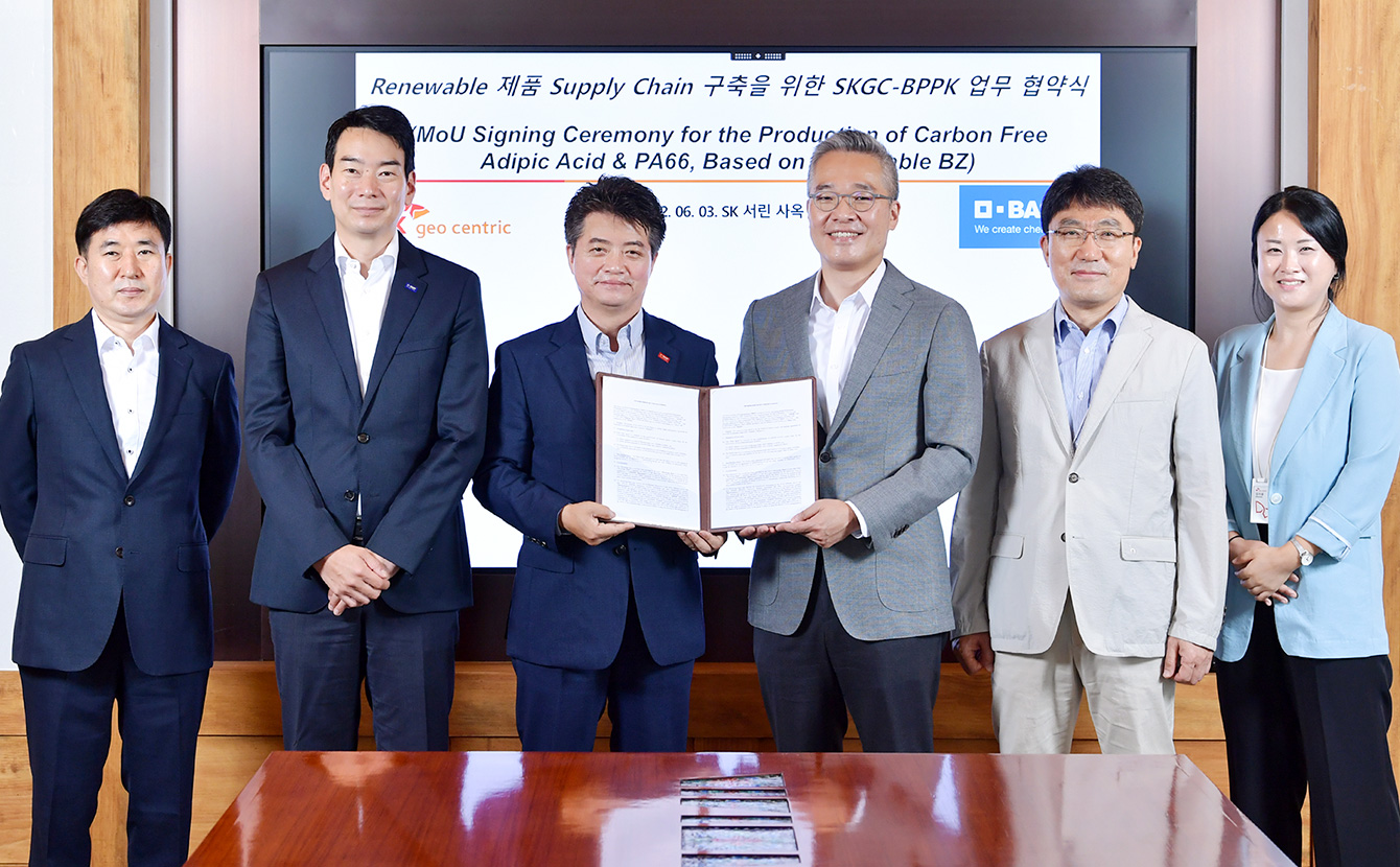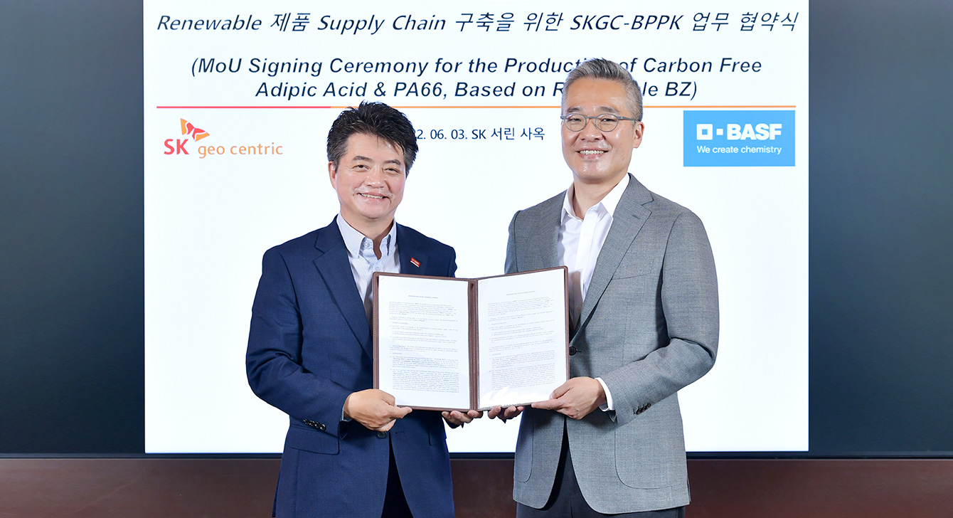 SK이노베이션의 화학사업 자회사인 SK지오센트릭과 글로벌 화학기업 바스프(BASF)의 폴리아미드* 사업 자회사인 BPPK(Basf Performance Polyamide Korea, 이하 BPPK)가 친환경 화학 소재 공급망 구축을 통한 그린 생태계 조성에 나선다.
