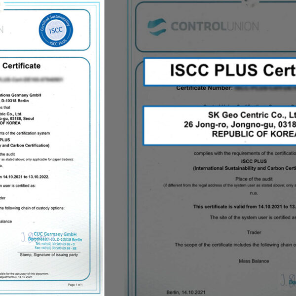 ▲ SK지오센트릭이 지난해 받은 ISCC PLUS 인증