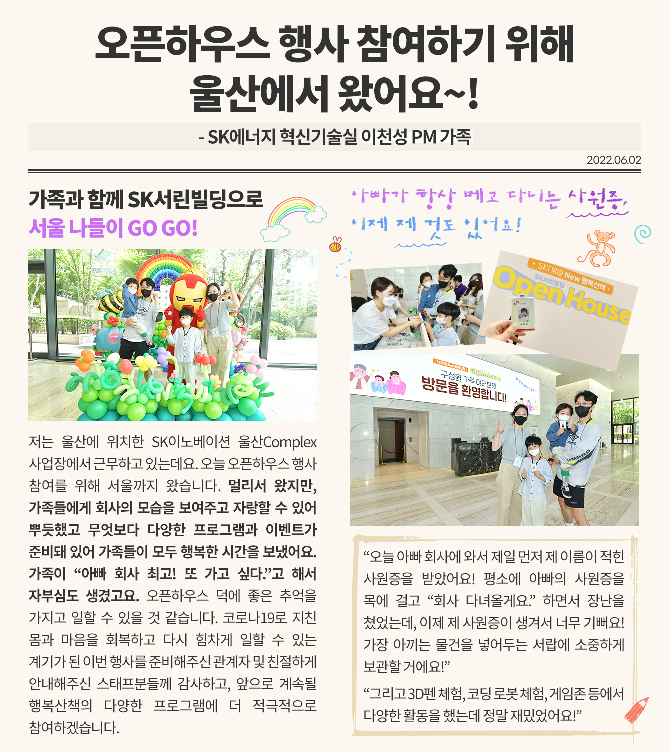 추억을 차곡차곡, 구성원과 가족 모두 행복을 나눈 시간! 생생한 후기로 만나보는 SK이노베이션 서린빌딩 오픈하우스