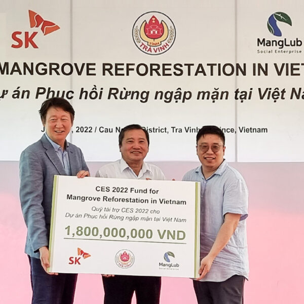SK그룹은 CES 기간에 관람객들이 SK 전시관을 관람하는 동안 각 부스에 마련된 각종 체험 활동에 참여하면서 적립한 그린포인트 1억원을 탄소감축에 직접 동참한다는 의미를 담아, SK이노베이션이 2018년부터 베트남 짜빈성 지역에서 꾸준히 진행해 오고 있는 맹그로브숲 복원을 위해 기부하기로 했다. ‘맹그로브’는 아시아의 허파라는 별칭을 가질 정도로 뛰어난 이산화탄소 포집능력을 가지고 있는데다, 생물다양성 보존에 있어서도 탁월한 가치를 지닌 식물이다.