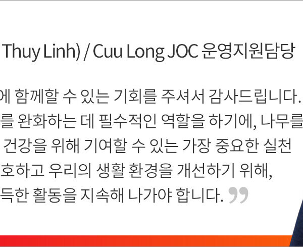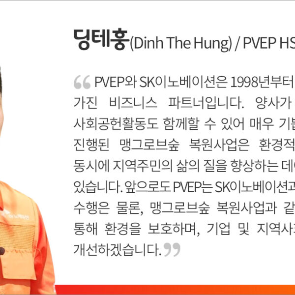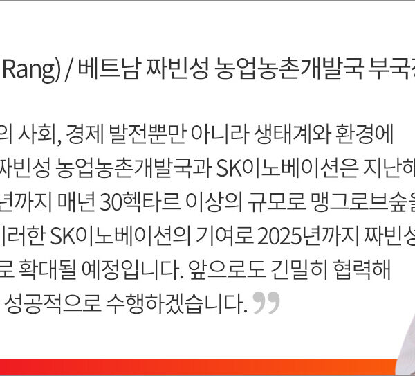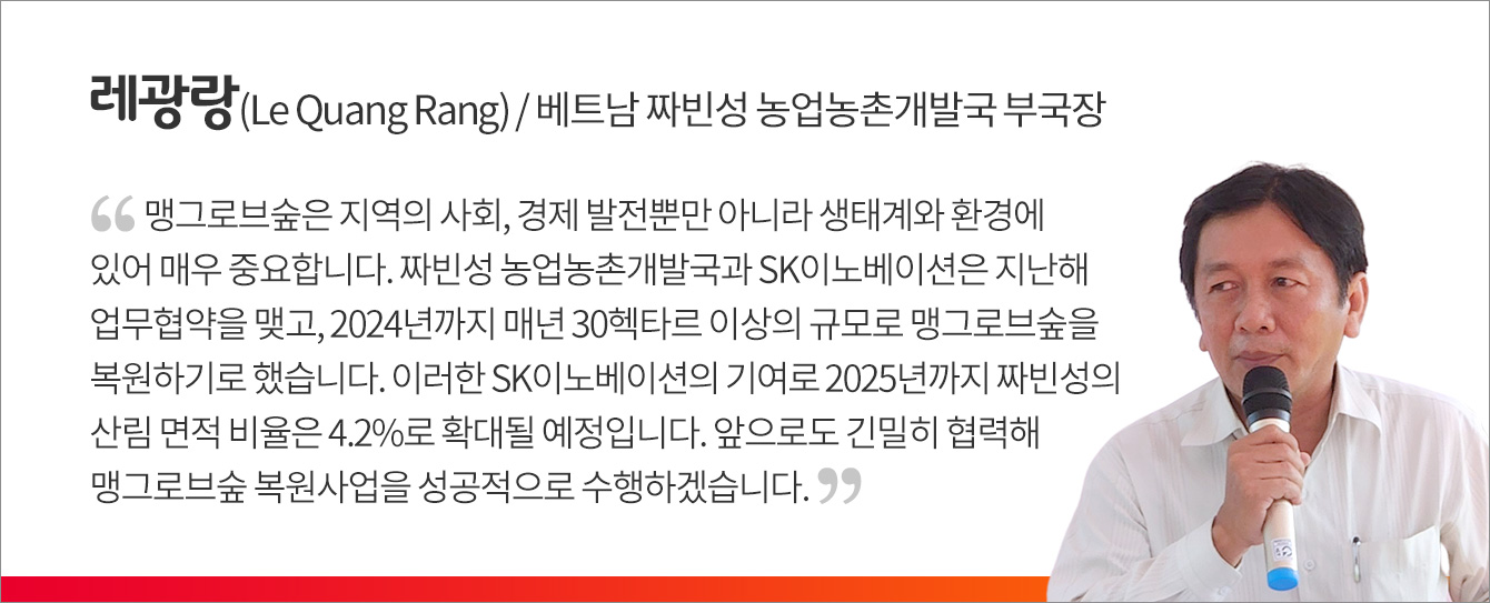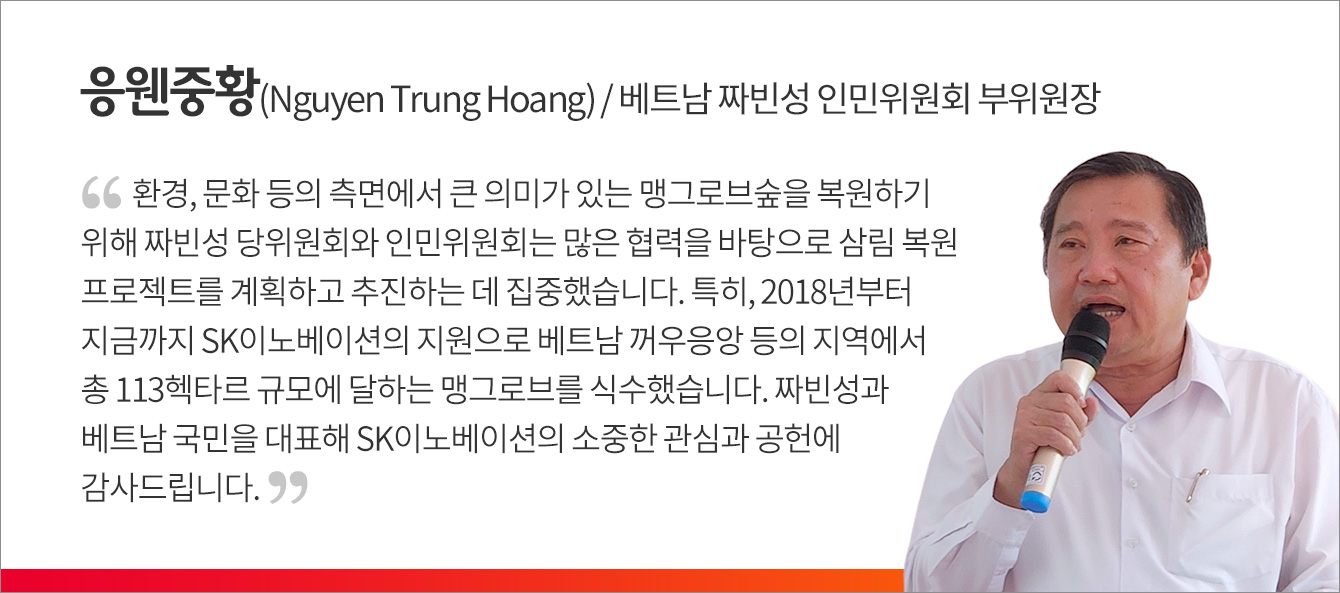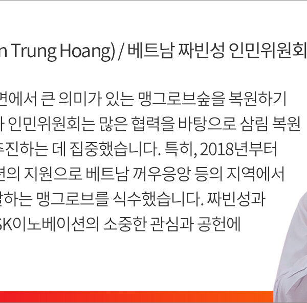 – “베트남을 초록빛으로 물들인 116ha의 기적, 진정성을 인정받다” – SK이노베이션의 맹그로브숲 복원사업, 베트남 짜빈 성 정부로부터 공로상 수상