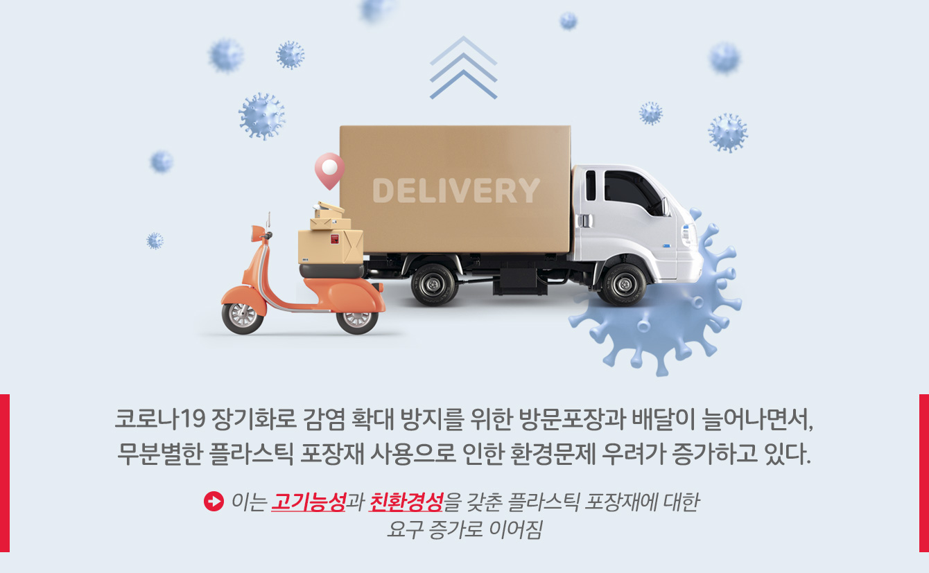 코로나19 장기화로 감염 확대 방지를 위한 방문포장과 배달이 늘어나면서 일회용품 포장재 및 플라스틱 사용량이 급격히 증가했다. 플라스틱은 일상생활의 필수품으로 자리 잡았으나 무분별한 사용으로 인해 환경문제 우려 또한 증가하고 있다.