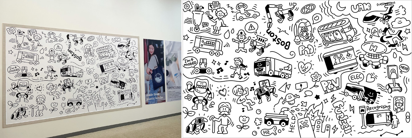 아울러 뮤지엄숍 한 켠에는 우시산이 현대자동차 전주공장과 함께 디자인한 ‘미래 모빌리티 팝아트’를 선보여 눈길을 끌었다. 팝아트에는 자율주행 자동차, 구조 드론 등 모빌리티로 가능한 다양한 확장 세계가 표현됐다. 우시산이 추구하는 친환경 가치가 담긴 이 팝아트 작품은 100% 국내산 폐PET병으로 만든 대형 현수막(가로 3.6미터, 세로 2미터)에 인쇄돼, 벽면을 아트월(Art wall)로 탈바꿈시키며 울산박물관을 찾은 관람객들의 눈을 사로잡았다.