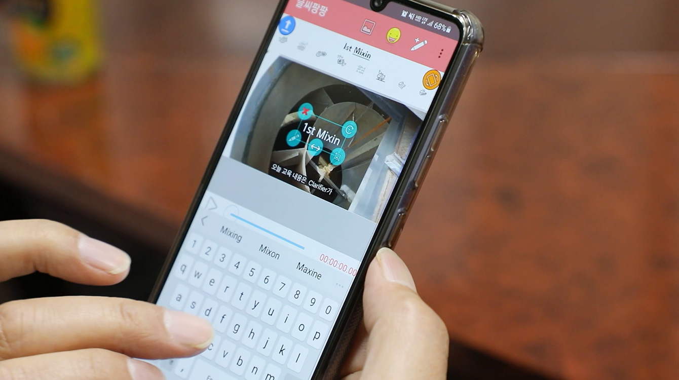 ▲ 쉬는 시간을 활용해 스마트폰으로 교육영상을 제작 중인 SK에너지 김정목 과장