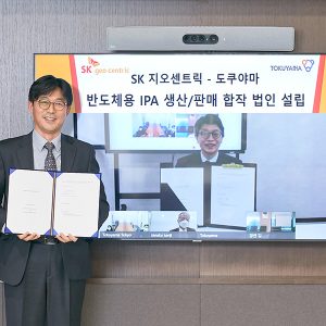 요코타 히로시 도쿠야마 사장은 기념사를 통해 “SK지오센트릭과의 파트너십을 무엇보다 소중하게 생각하며, 대만, 싱가포르, 일본의 고객에게 오랜 공급을 통해 축적해온 도쿠야마의 기술력을 바탕으로 성장해 나가는 한국 고순도 IPA 시장에 적극 참여하겠다”고 밝혔다.