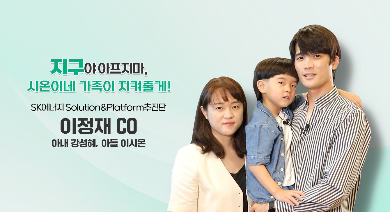 산해진미 활동에 동참하며 지구를 지키기 위한 실천을 약속한 SK에너지 Solution & Platform추진단 이정재 CO와 아내 강성혜 씨, 그리고 아들 이시온 군을 만나보자.