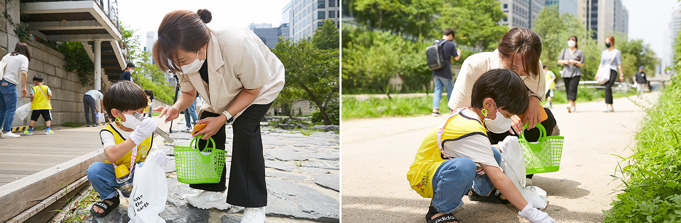 이정재 CO : 제 아내와 아이가 청계천 일대를 돌아다니며 쓰레기를 줍는 산해진미 활동에 동참했는데요. 지구 환경보호에 도움이 되고, 우리 아이도 환경에 대해 공부할 수 있는 뜻깊은 시간이었습니다.