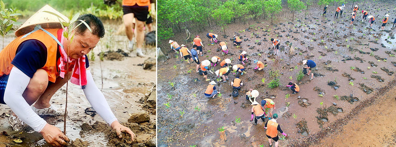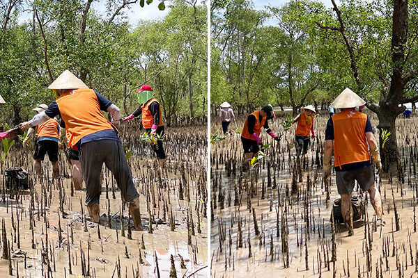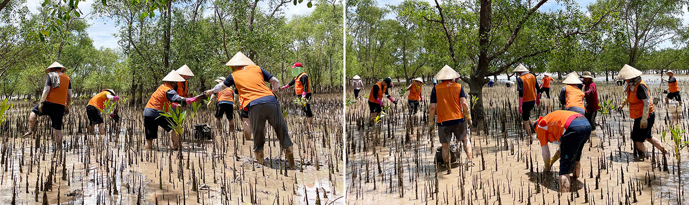 이튿날인 9월 20일 울산CLX 구성원 자원봉사단은 가장 먼저, 2020년과 2021년에 SK이노베이션이 베트남 현지 주민들과 함께 맹그로브 묘목을 식수한 이전 식수지 현장을 찾아 과거와는 달라진 무성한 맹그로브 숲을 둘러봤다. 그리고 황폐했던 땅에 맹그로브가 숲을 이루며 푸른 미래를 만들기 위한 희망의 싹을 틔우고 있는 현장을 직접 목격하며 지구 환경보호의 필요성을 다시금 확인했다.
