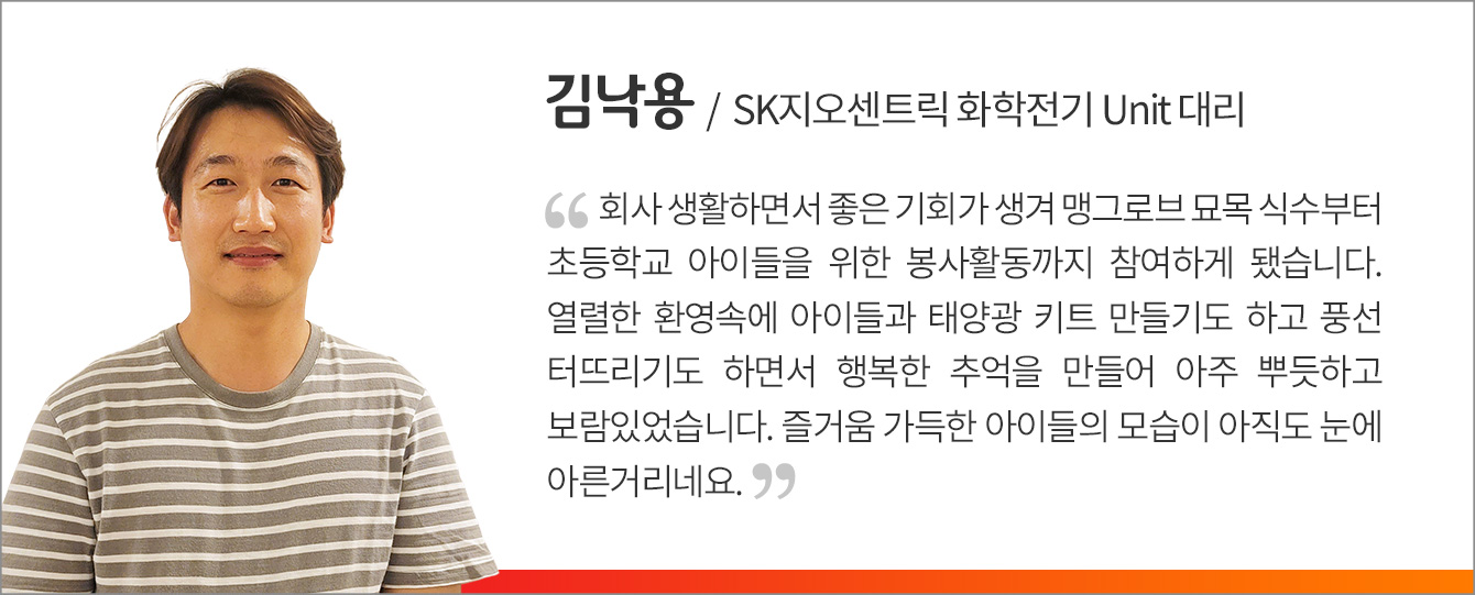 지금 우리가 누리고 있는 환경은 미래 세대로부터 빌려온 것이라고 한다. 미래 세대에게 맑고 푸른 지구를 선물하기 위해 앞으로도 SK이노베이션은 기후변화 대응 및 생물다양성 보존 등 다양한 친환경 가치를 가진 ‘베트남 맹그로브숲 복원 사업’을 지속적으로 펼쳐갈 예정이다.