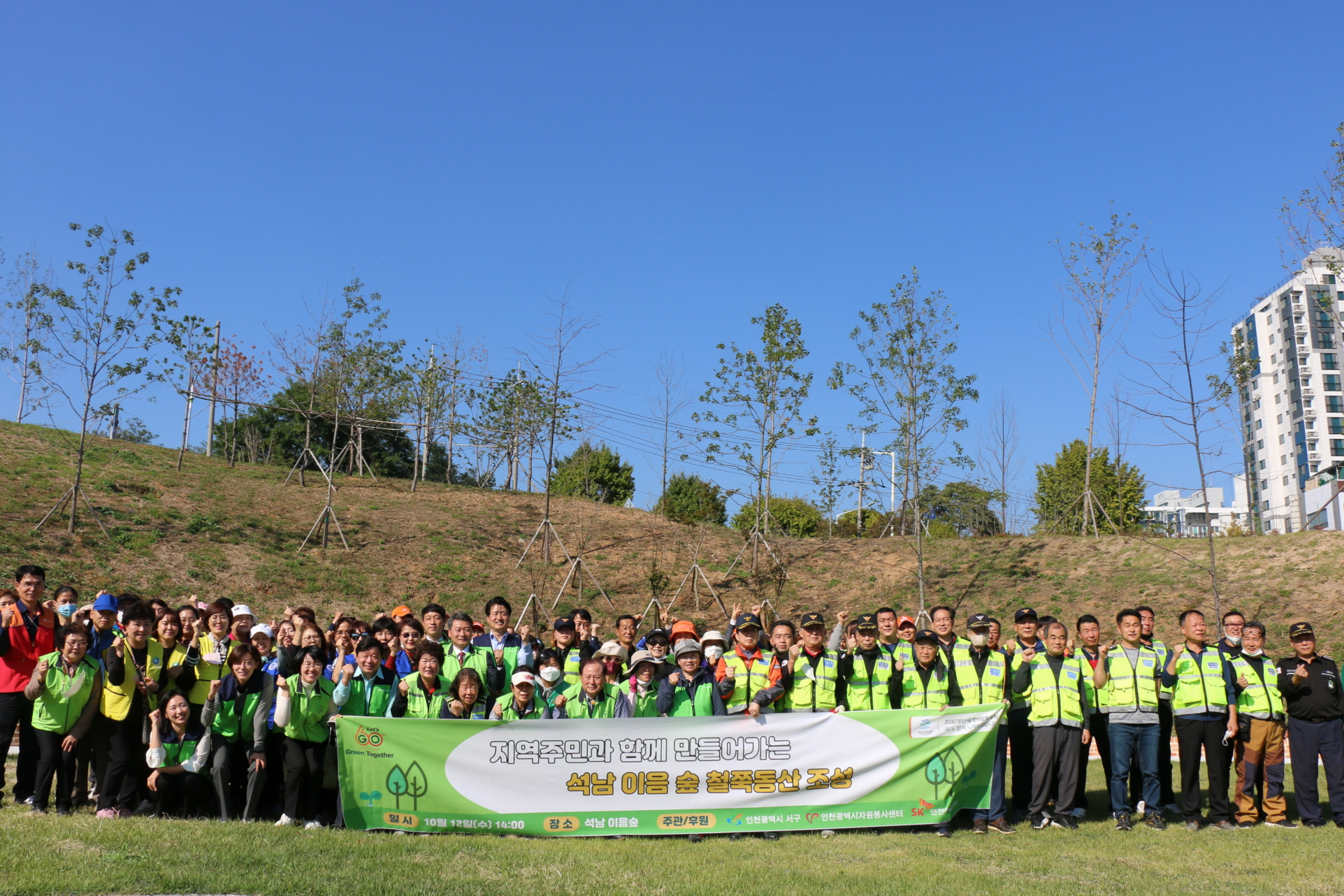 SK인천석유화학과 인천시자원봉사센터, 인천 서구청은 지난 12일 석남완충녹지에서 도심 속 나무심기 행사를 진행했다.