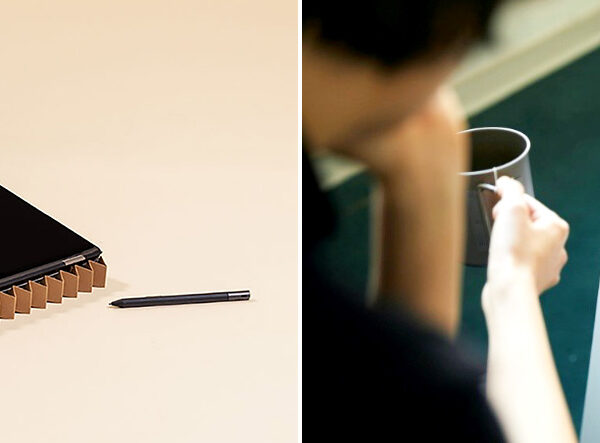 ▲ (좌) 친환경 소셜벤처 그레이프랩의 휴대용 접이식 노트북 거치대 지플로우(g.flow) / (우) 그레이프랩의 휴대용 접이식 스마트폰 거치대 지스탠드(g.stand)