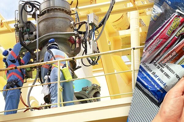 (좌) LNG 선적을 위해 로딩암(Loading Arm)을 ‘프리즘 어질리티’호에 연결하고 있다. (우) 탈수 방지를 위한 전해질 얼음바