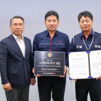 소통과 상생으로… 노사문화 딥체인지 실천 노사 화합의 결실, SK인천석유화학 ‘노사문화 우수기업’ 선정