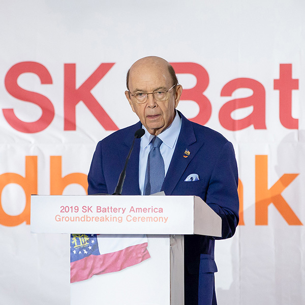 “SK이노베이션의 투자는 미국의 전기자동차 경쟁력을 높일 것” [美 전기차 배터리 공장 기공식] 윌버 로스 (Wilbur Ross) 미국 상무부 장관