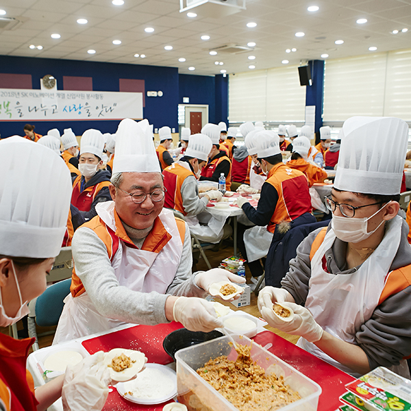 [사진] SK이노베이션 경영진과 신입사원들, 명절 음식 만들기 자원봉사활동 진행
