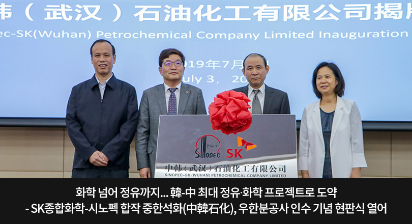 화학 넘어 정유까지… 韓-中 최대 정유∙화학 프로젝트로 도약 – SK종합화학-시노펙 합작 중한석화(中韓石化), 우한분공사 인수 기념 현판식 열어